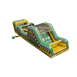 The Mega Biohazard Run & Slide is great for most indoor gyms or rooms with tall ceilings and larger floor spaces. Keep in mind, that ceilings must be at least 18ft high to adequately have height for the slide.
